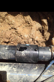 處理方法:焊接時時刻觀察電熔焊機(jī)電流變化,發(fā)現(xiàn)電流上升,說明焊接區(qū)域銅絲并絲,應(yīng)立即停止焊接,記錄焊接剩余時間,根據(jù)剩余時間決定是否降低電壓補(bǔ)焊。特別注意,如果因操作不當(dāng)引起內(nèi)部著火現(xiàn)象,應(yīng)就地取材封堵管材兩頭,使內(nèi)部真空,火自然熄滅。