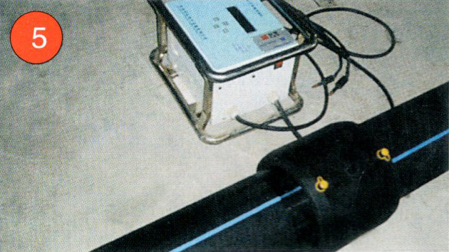 3. 將電熔管件套在管材上,把管校直保證在同一軸線上。